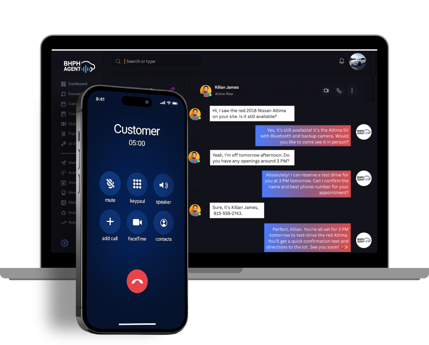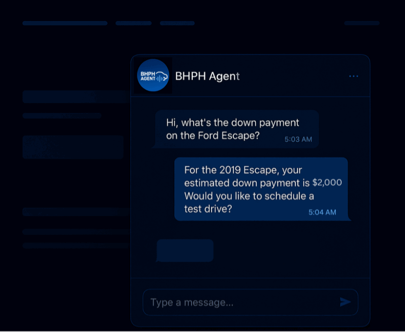 BHPH Agent is your dealership’s virtual employee. A bilingual AI that answers calls, chats, and texts 24/7. It knows your inventory, finance terms, and CRM, so every conversation feels like it’s coming from your own team.