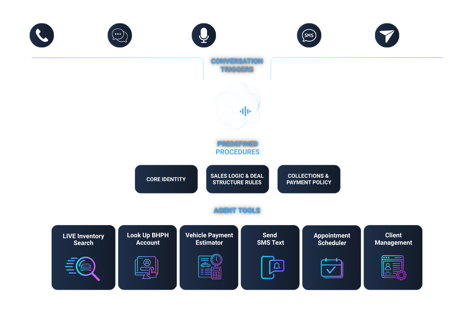 Dealer Branding — Built using your dealerships unique profile & rules. Custom name, voice, personality.